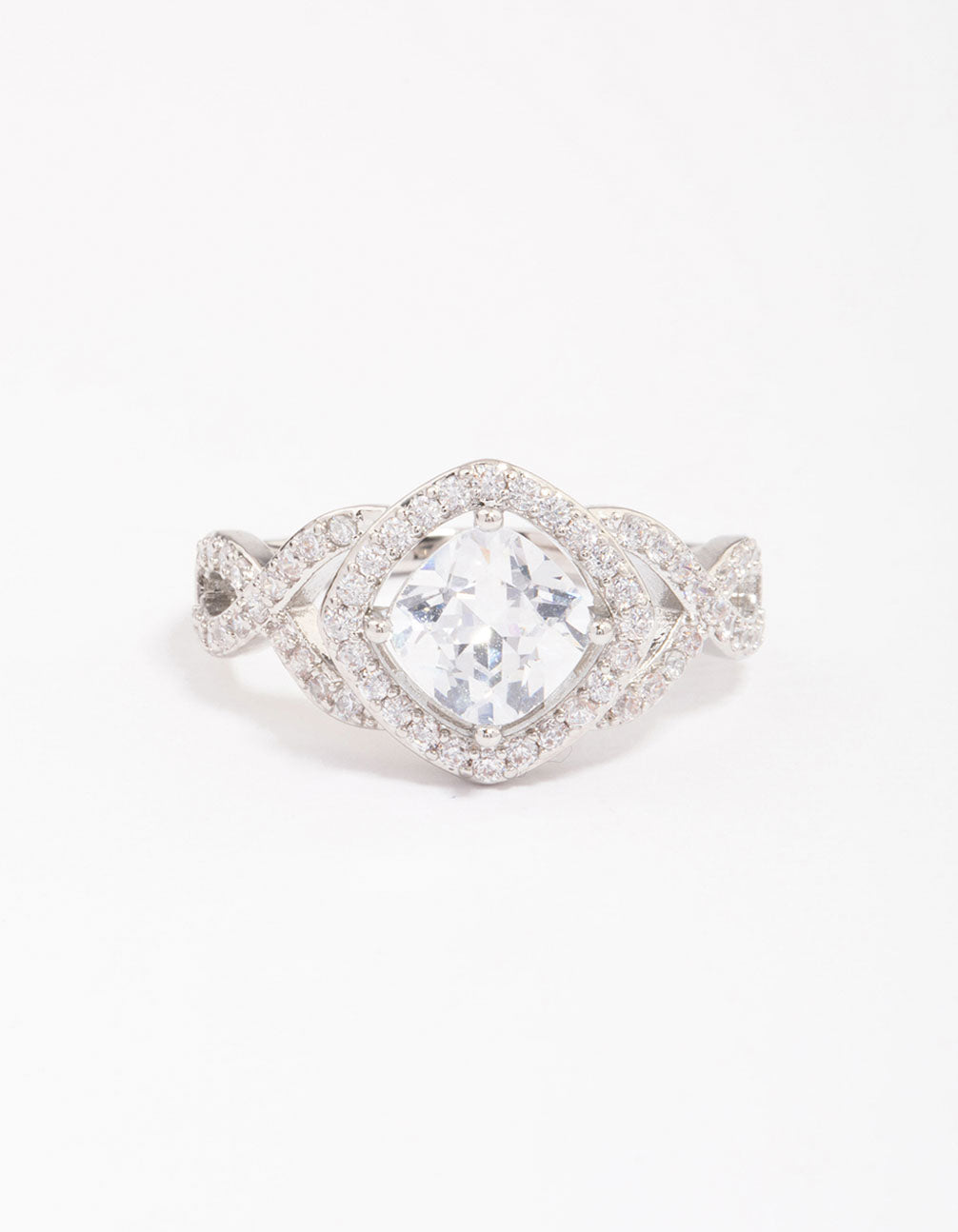 Rhodium Cushion Infinity Ring