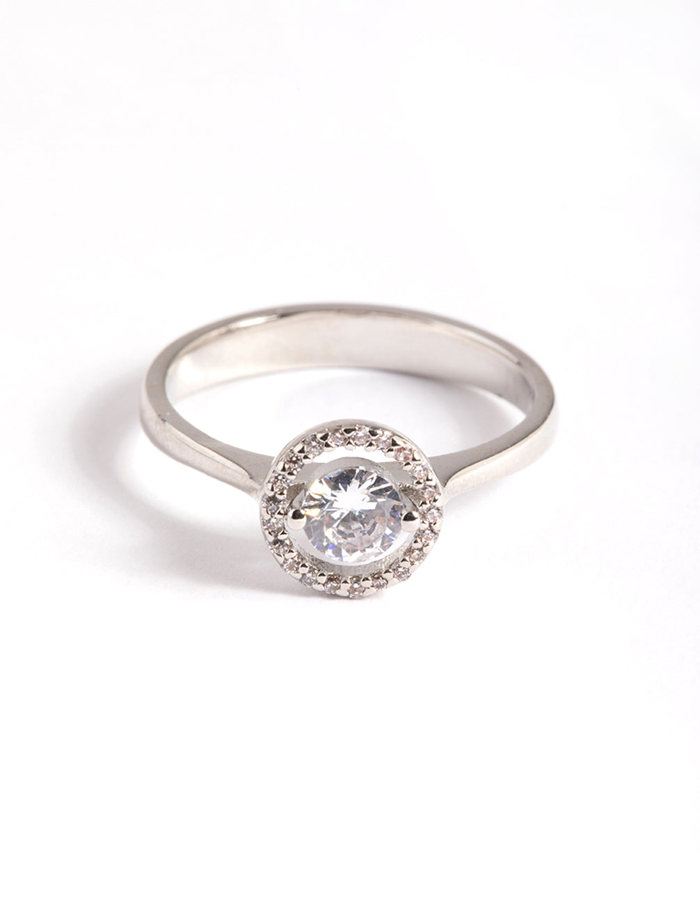 Silver Cubic Zirconia Centre Stone with Halo Ring