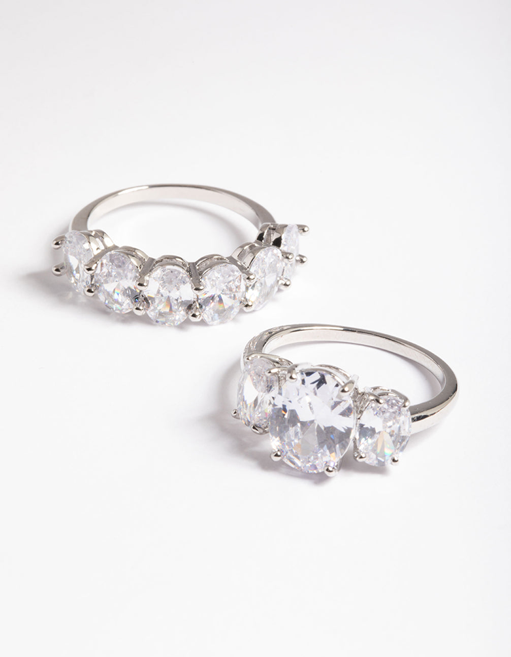 Silver Cubic Zirconia Statement Oval Ring 2-Pack