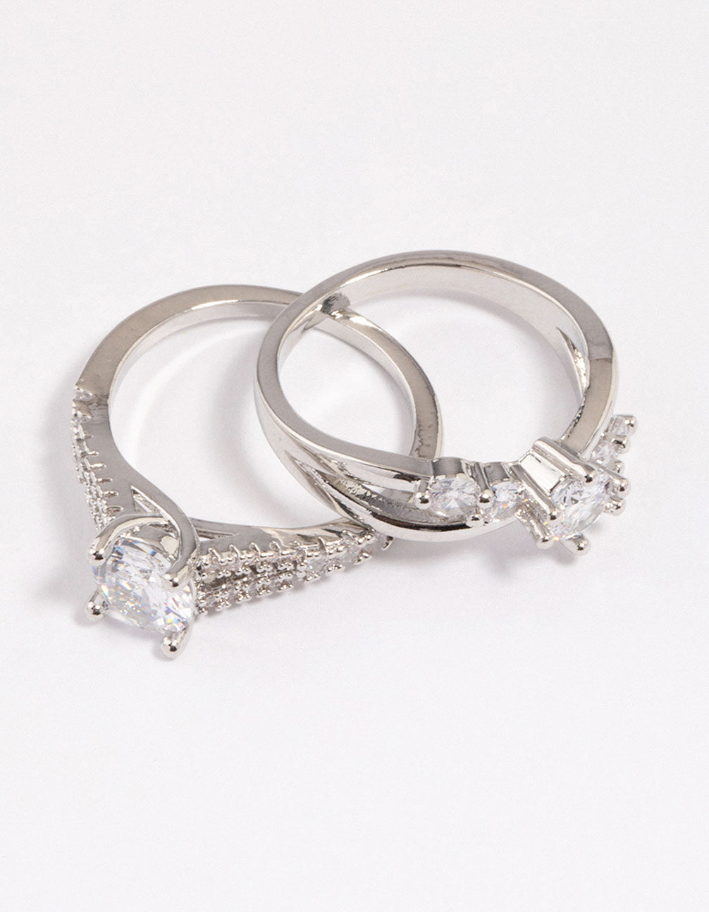 Silver Diagonal Cubic Zirconia Engagement Ring Pack