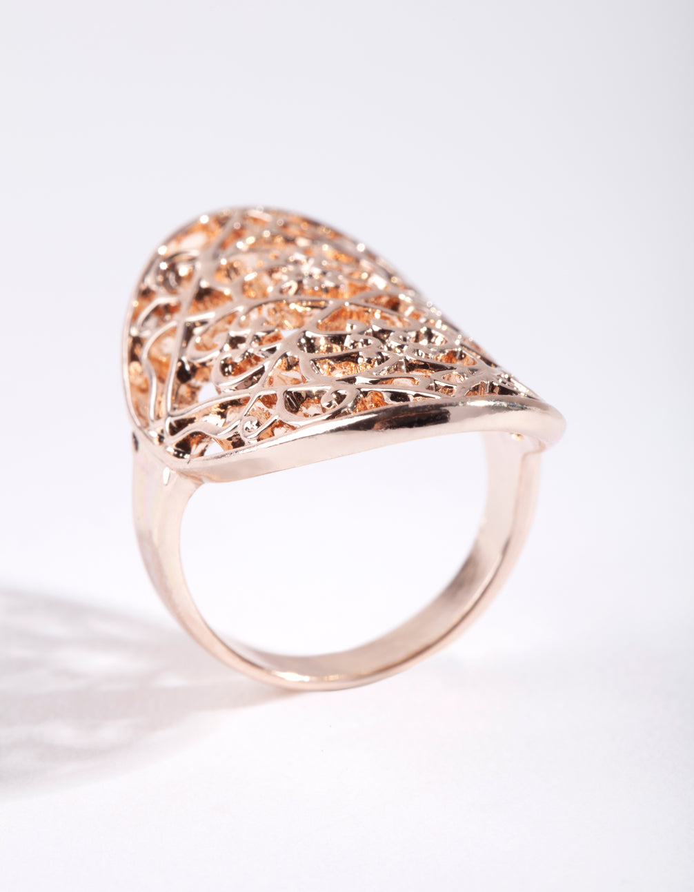 Elevate your look with this rose gold-toned filigree shield ring.