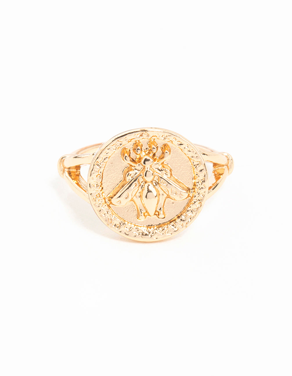 Make a statement in a stunning fashion ring. Stack with other styles for extra impact or wear alone for a refined addition to your ensemble. This ring features a bee on coin in a gold-tone setting.