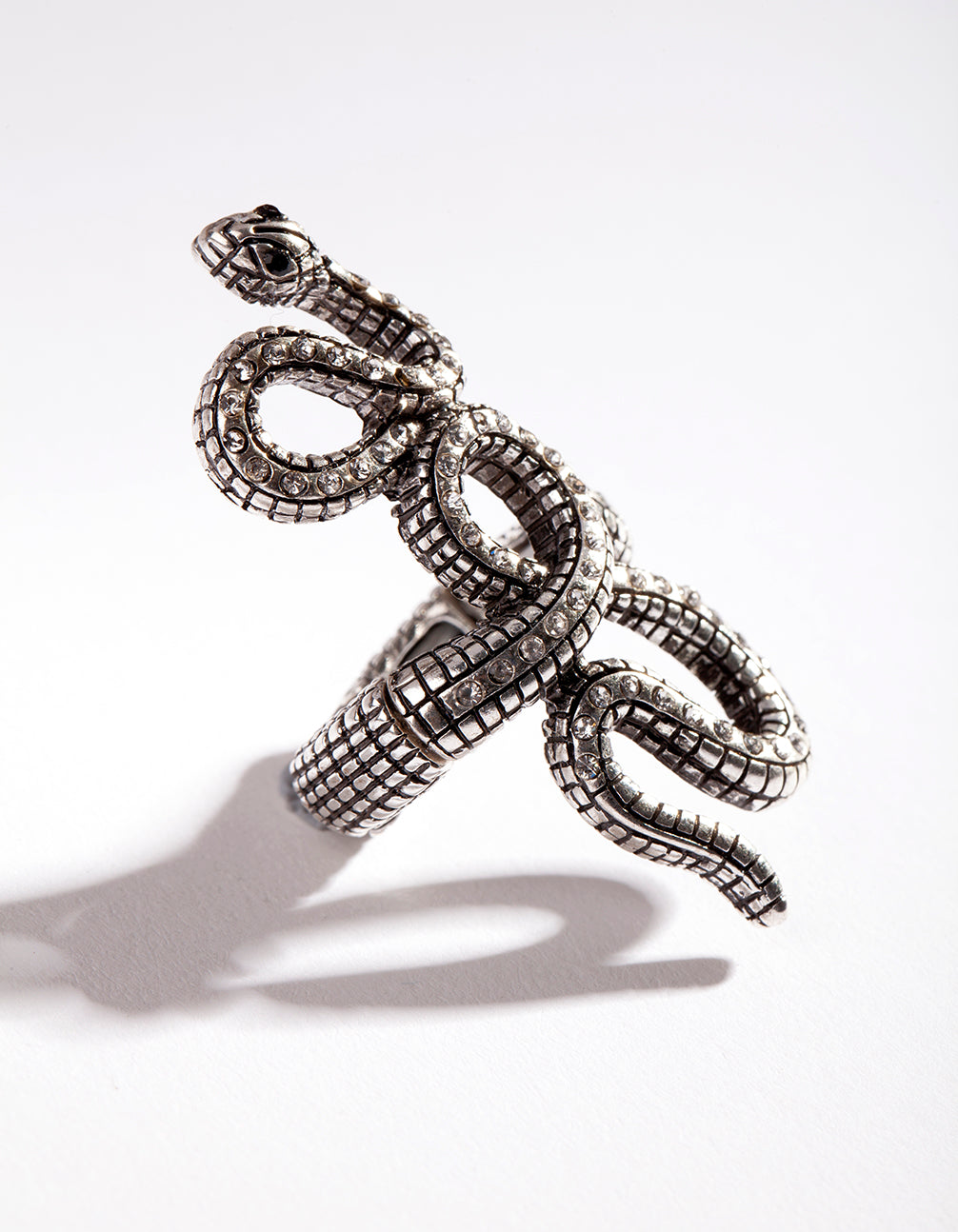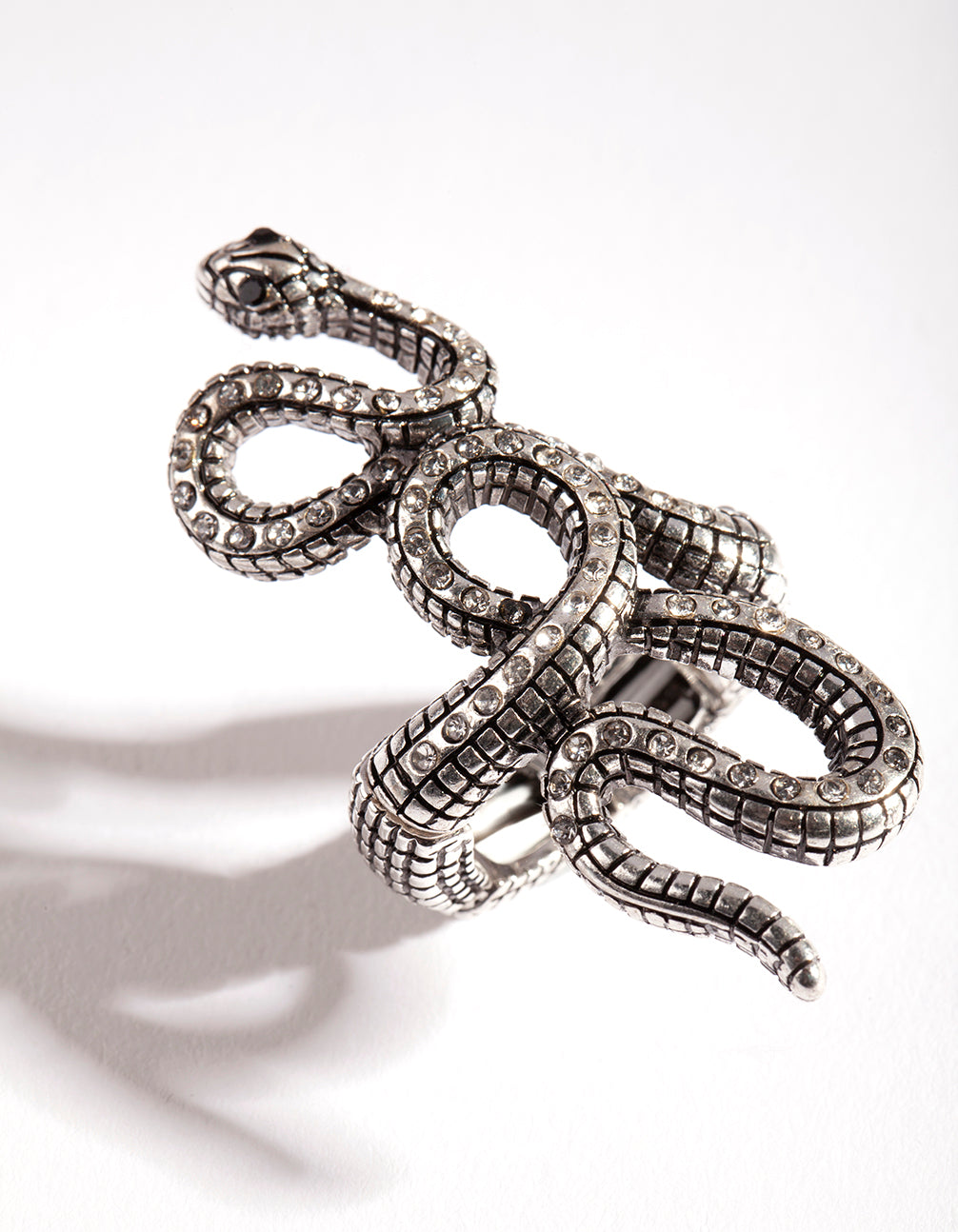 Make a statement at your next event with this eye-catching silver-toned snake diamante stretch ring.