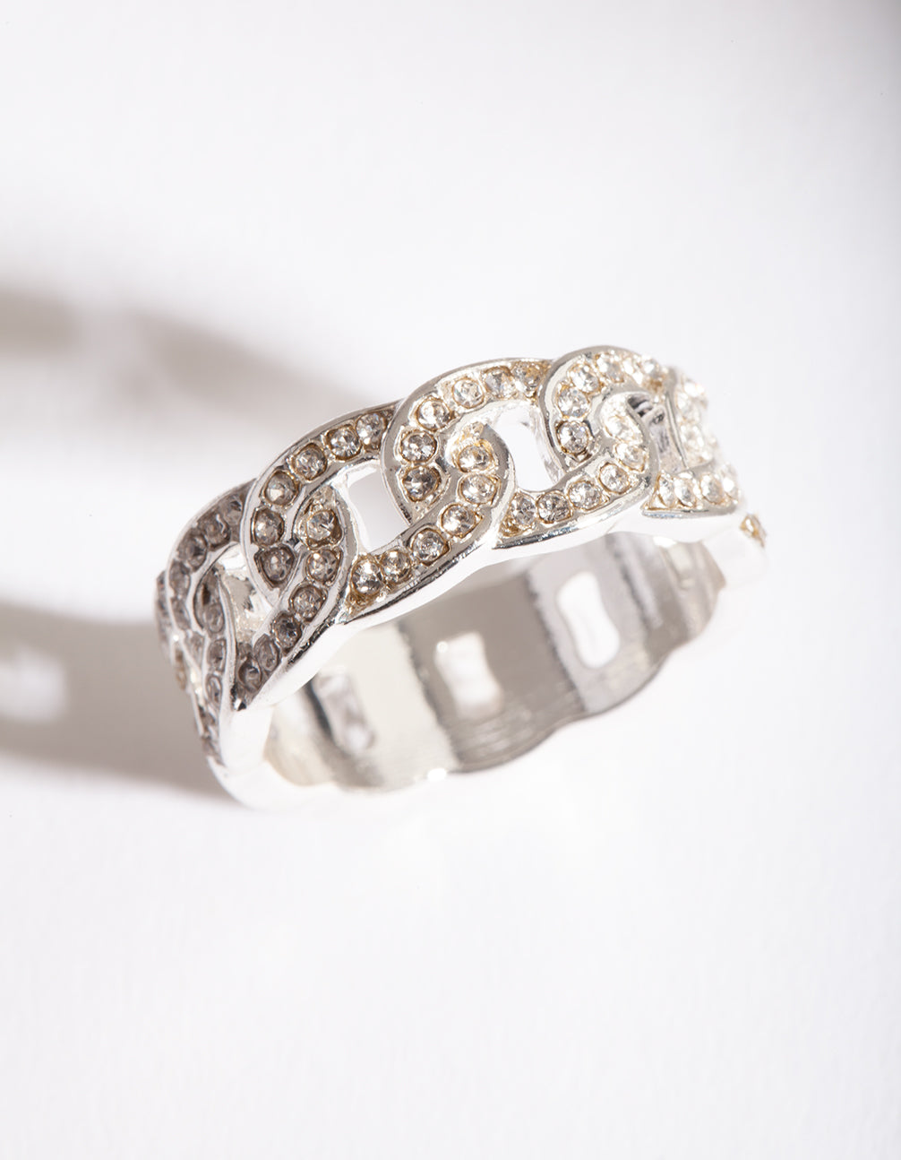 Make a statement in a stunning fashion ring. Stack with other styles for extra impact or wear alone for a refined addition to your ensemble. This ring features a silver-toned setting with a diamante embellished chain design.