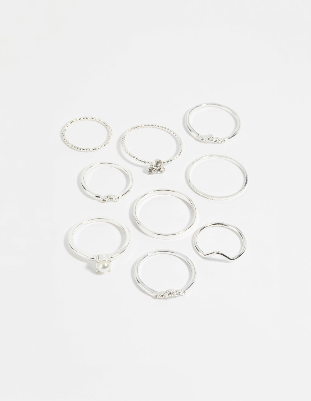 Silver Pearl & Diamante Ring 9-Pack