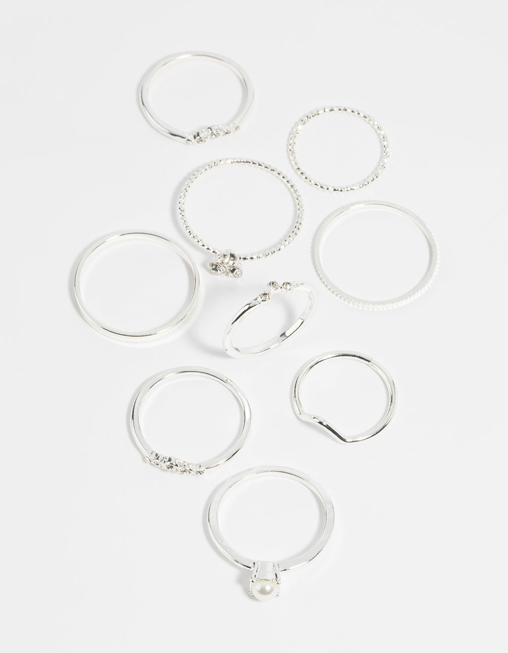 Ring it on! Our lovely rings are designed to be layered together for maximum impact. This pack features a variety of designs that are sure to impress. Mix them, match them, stack them!