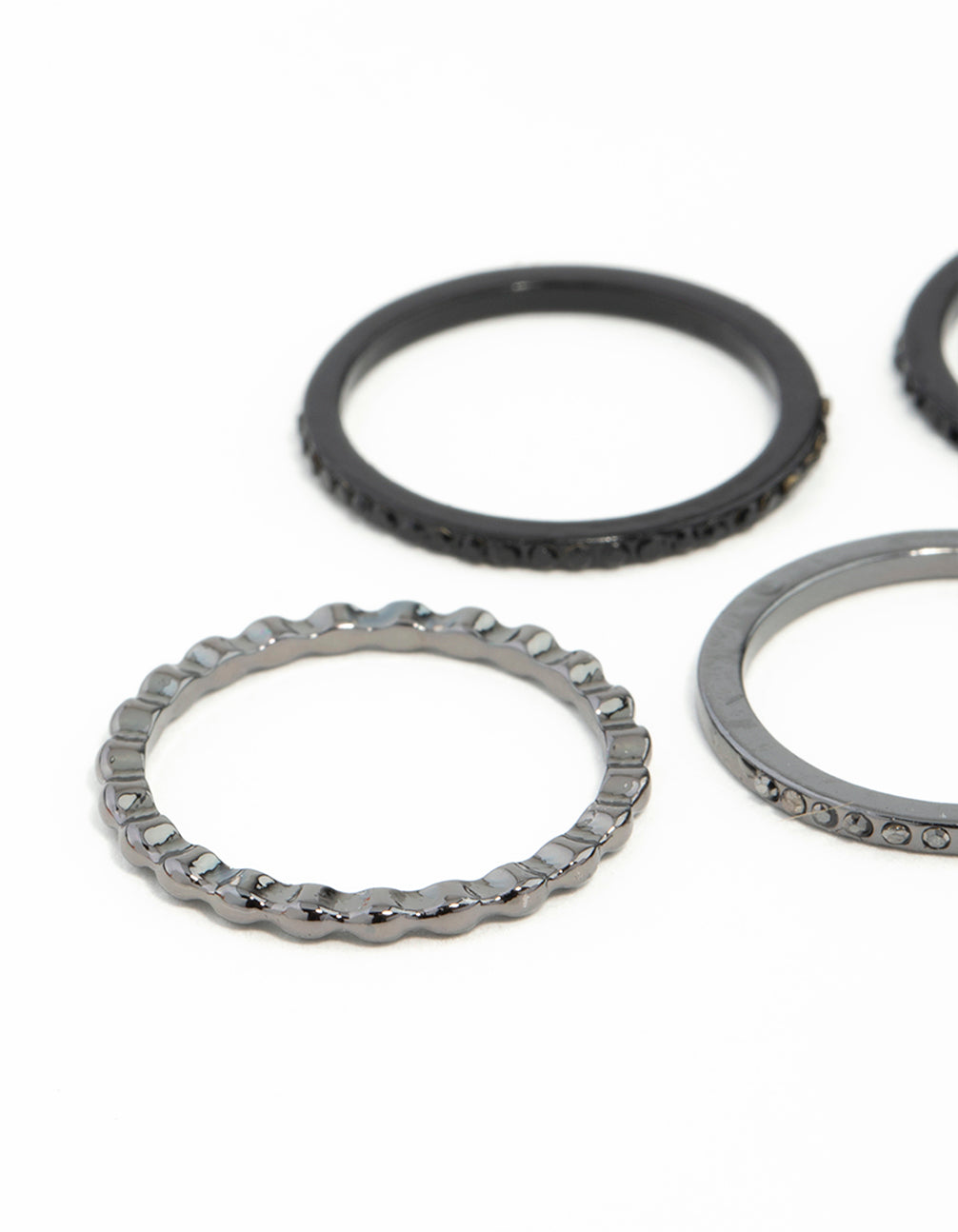 Black Fine Diamante Ring Stack