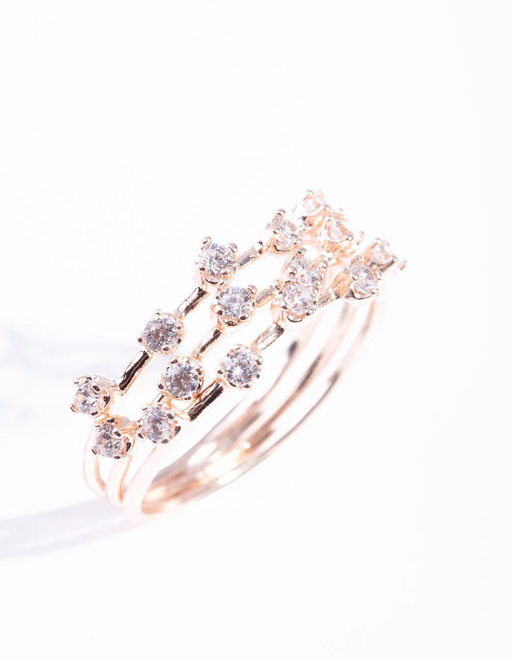 Rose Gold Cubic Zirconia Pattern Ring Stack