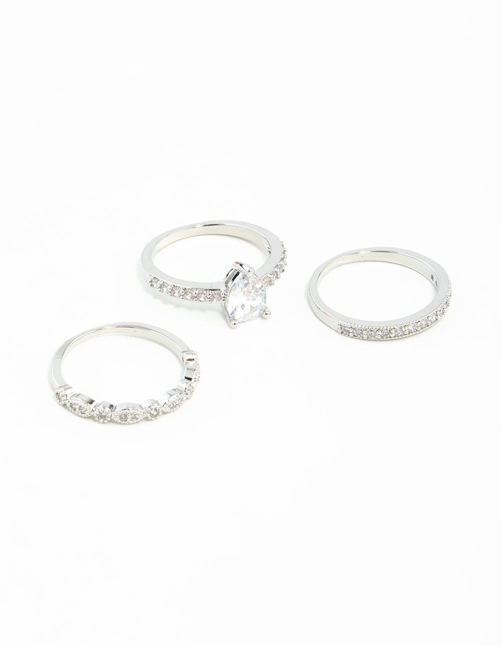 Stack it up with this silver-toned ring pack embellished with cubic zirconia stones. Cubic Zirconia stones provide a luxury look without the high-end price point. Add some sparkle to your daily life!