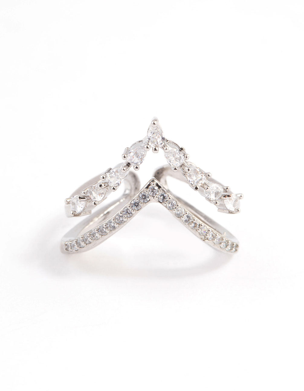 This silver-toned ring is crafted with an elegant, V-shaped design at the front for a unique point of difference. Pair this piece with some dainty cubic zirconia studs for an understated finish.