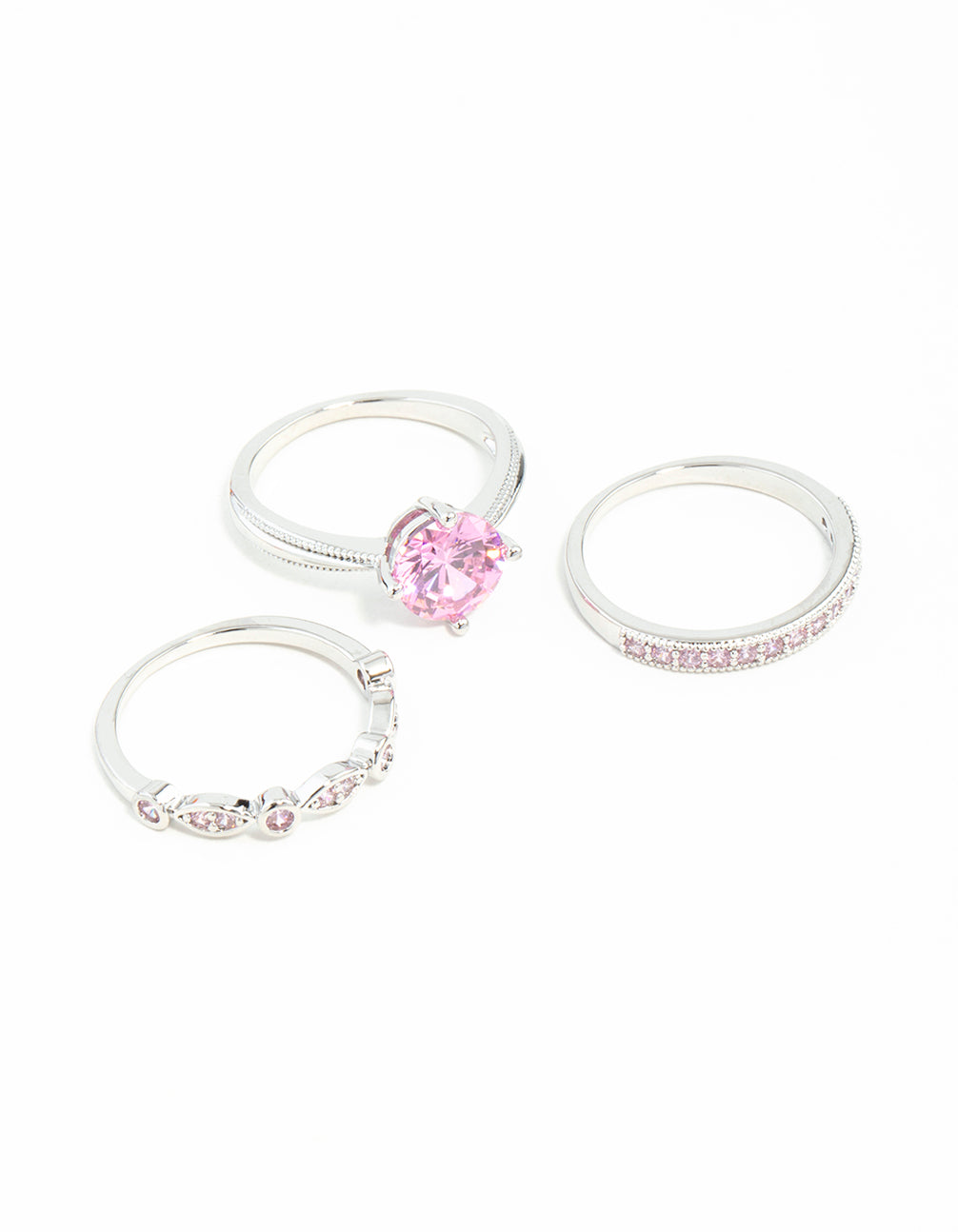 Pink Cubic Zirconia 3 Ring Stack Pack