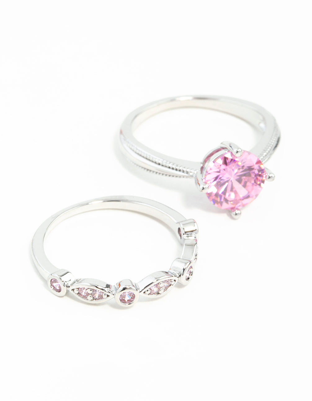Stack it up with this silver-toned ring pack embellished with pink cubic zirconia stones. Cubic Zirconia stones provide a luxury look without the high-end price point. Add some sparkle to your daily life!
