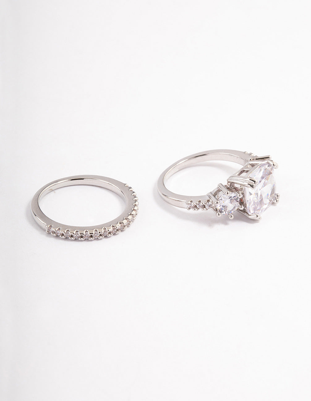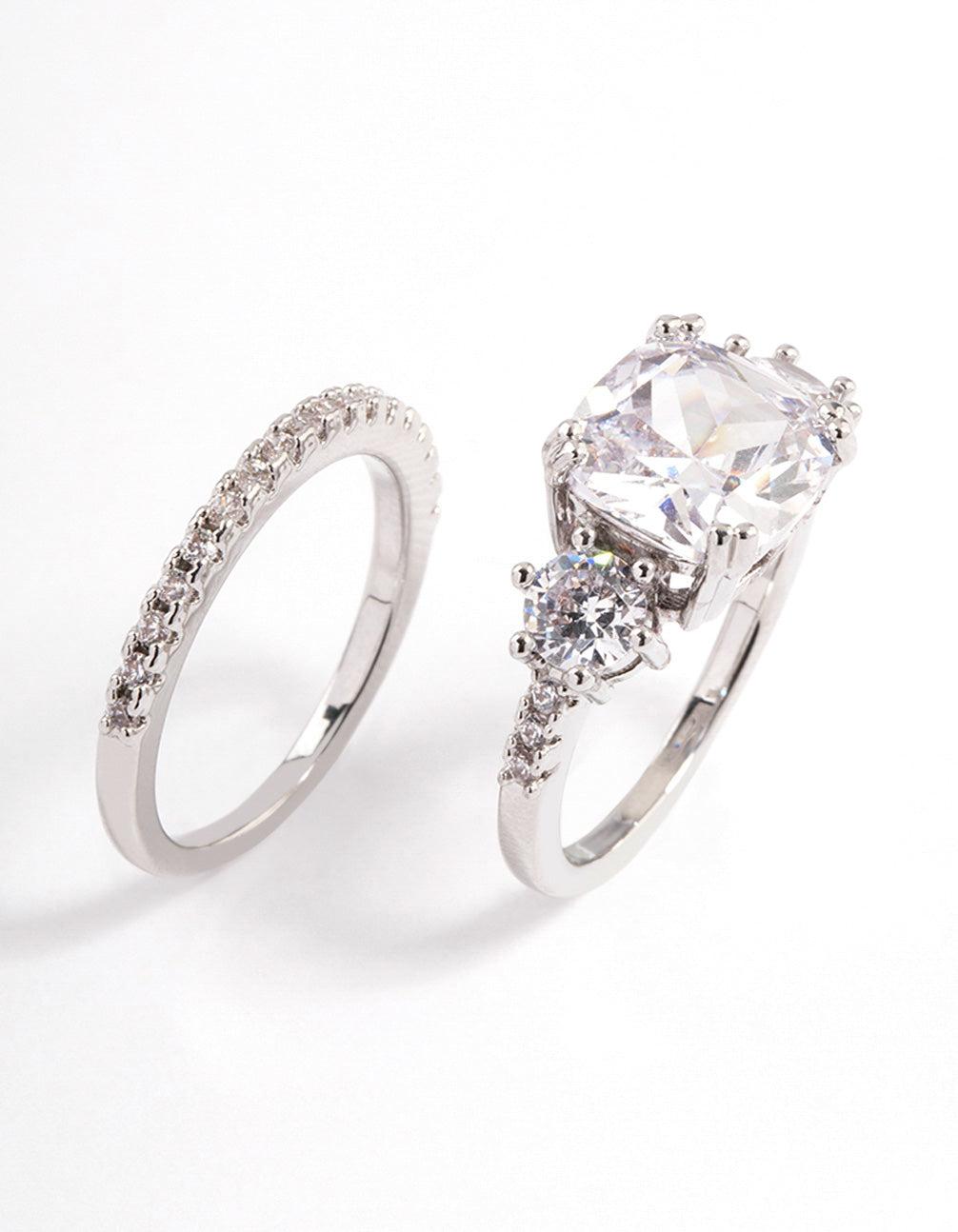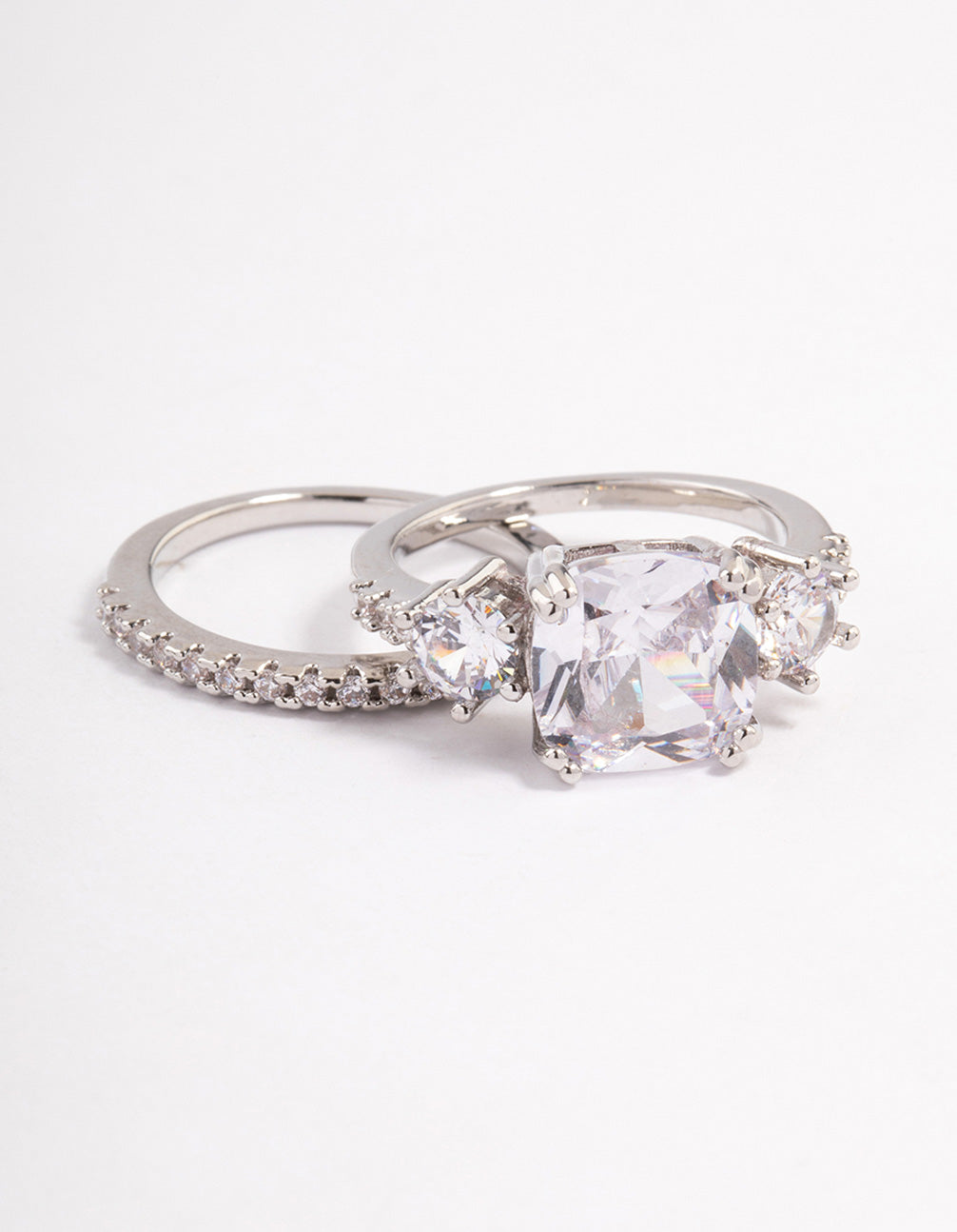 Rhodium Triple Stone Ring Set