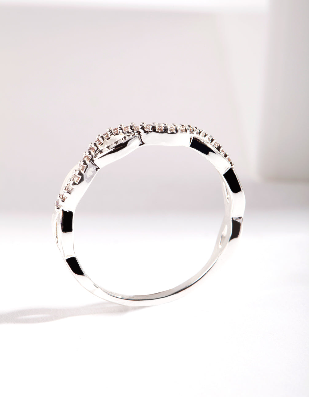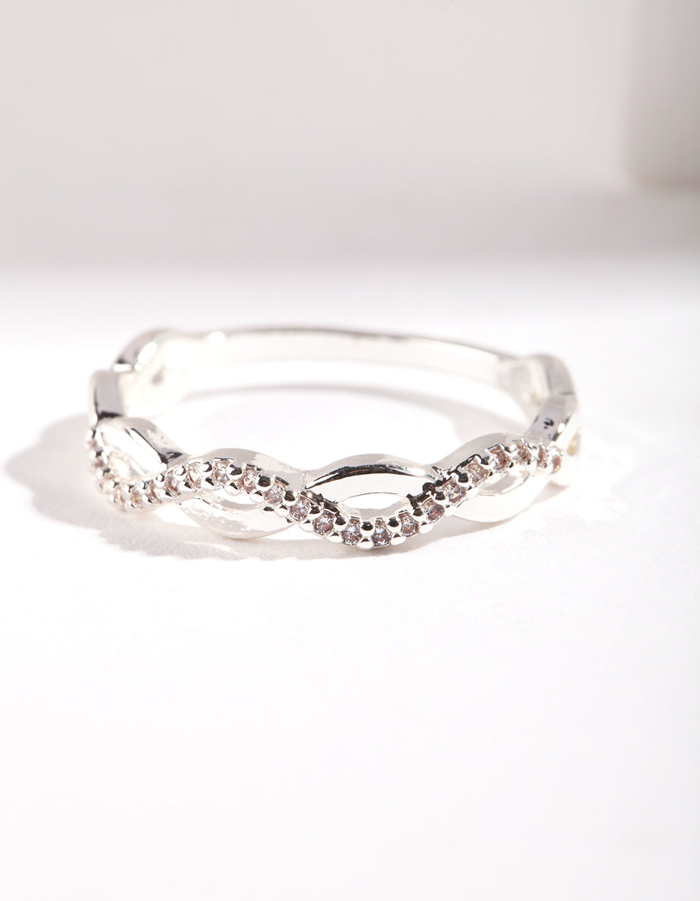 This silver-tone rope ring boasts a twisted design with half adorned with cubic zirconias. This is perfect to layer up with other rings or to wear on its own.