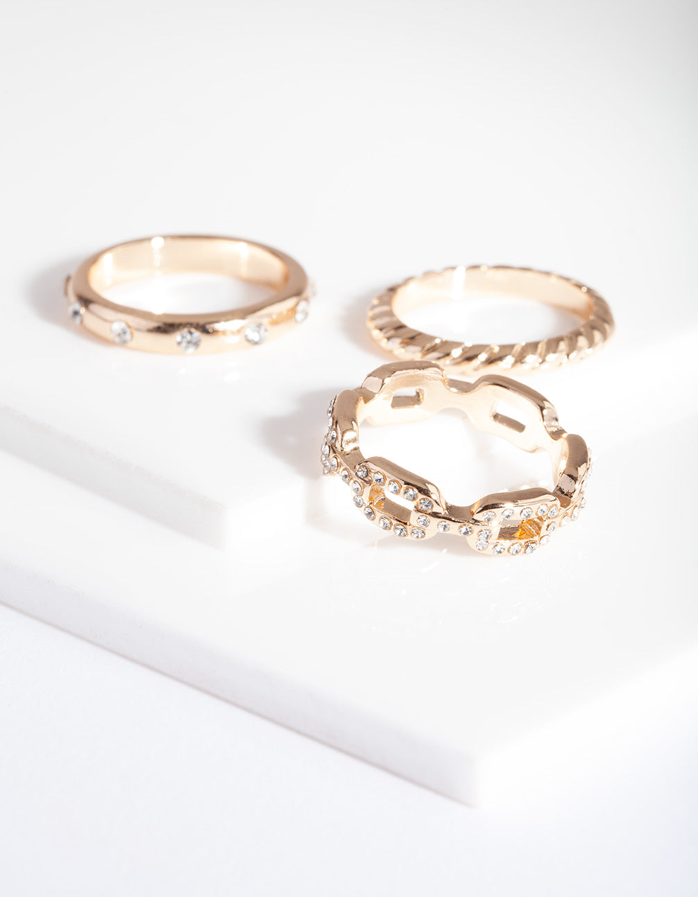 Gold Diamante Chain Ring Pack Gold Diamante Chain Ring Pack Gold Diamante Chain Ring Pack
