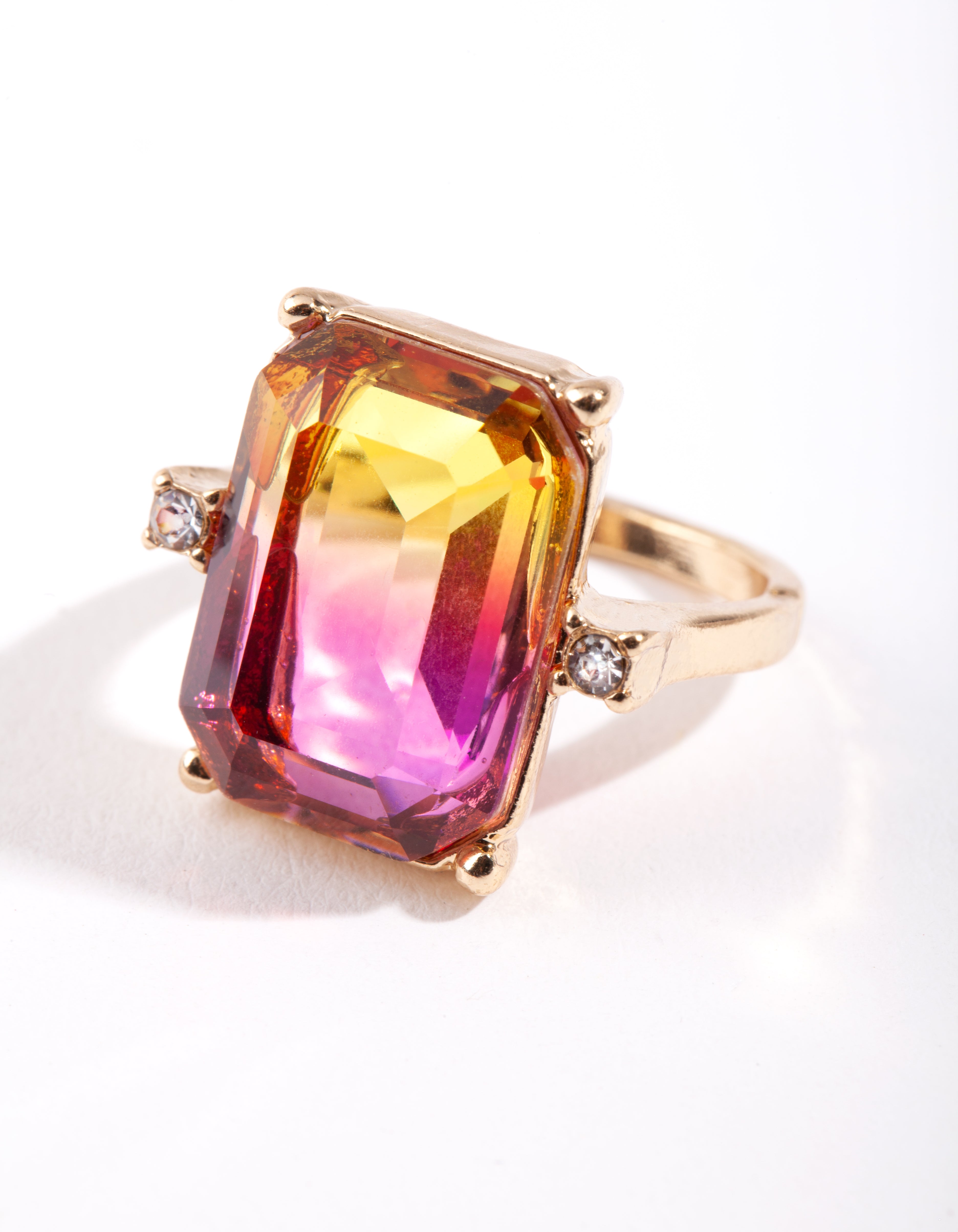 Elevate your look with this gold-toned pink and yellow ombre ring.