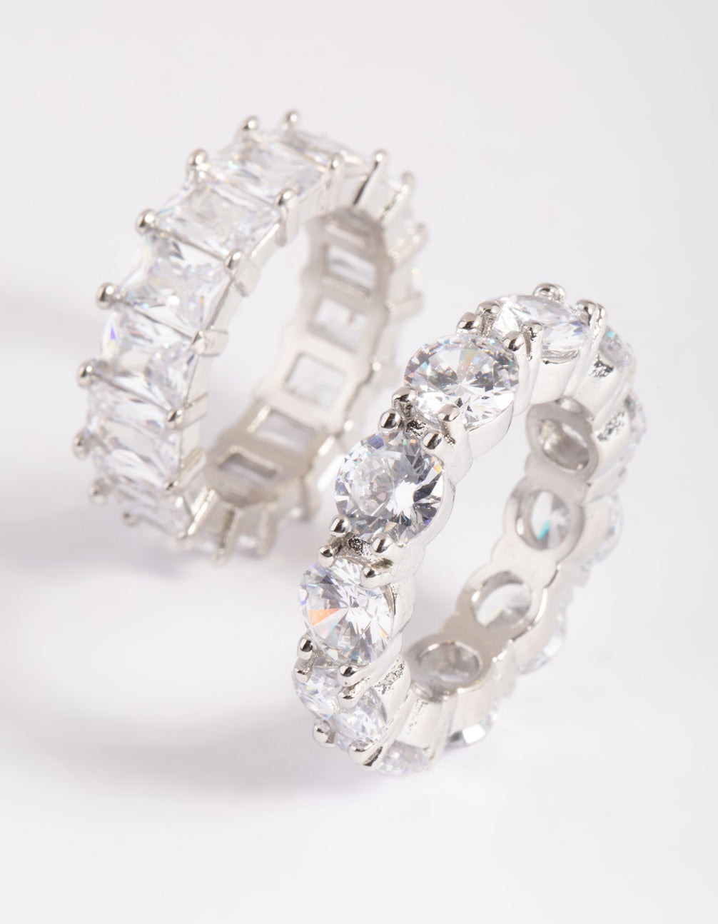 Rhodium Cubic Zirconia Baguette Ring Stack Pack