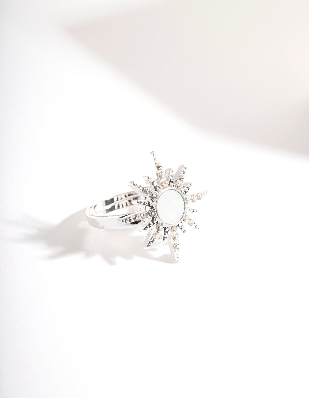 This silver-tone ring boasts a opal diamante starburst design. It's the perfect way to add some decoration to your fingers.