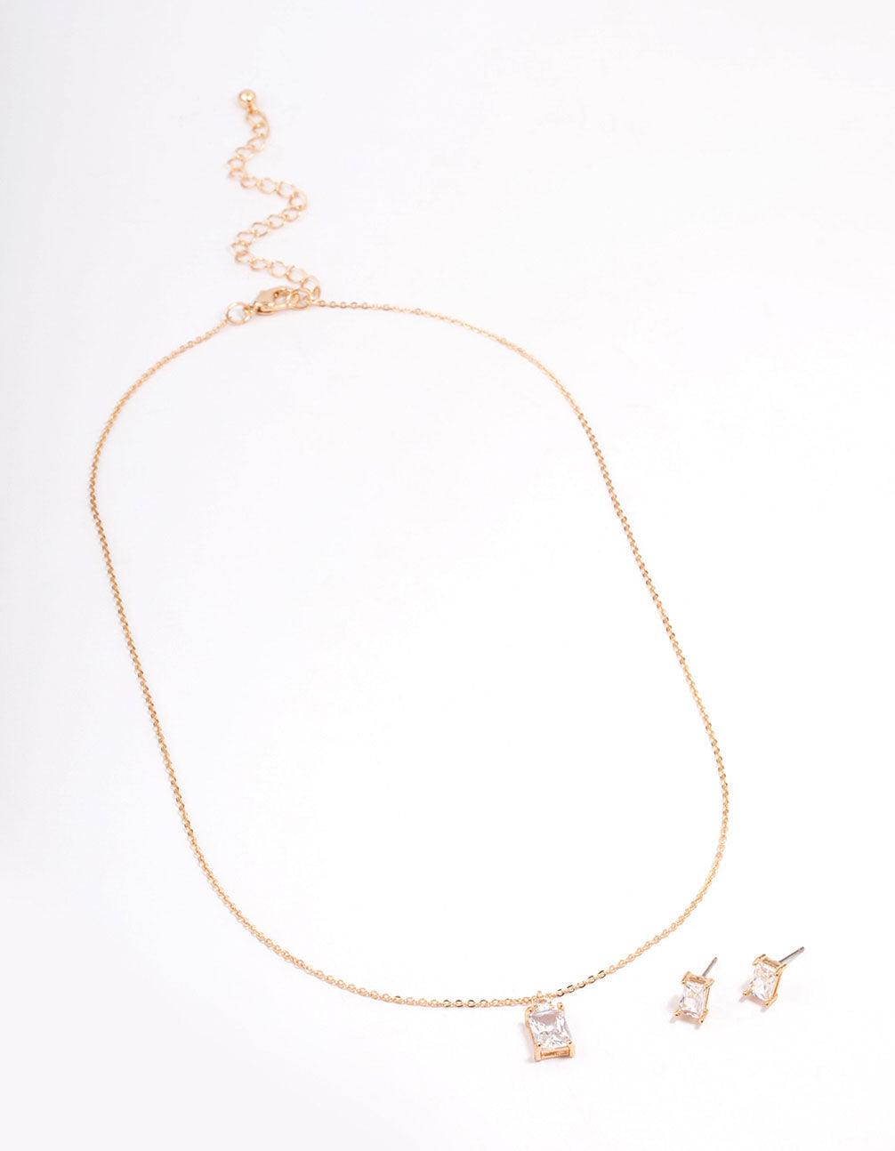 Gold Rectangle Cubic Zirconia Earring & Necklace Set