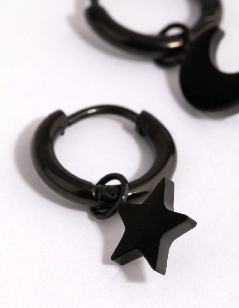 Matte Black Surgical Steel Celestial Huggie Earrings