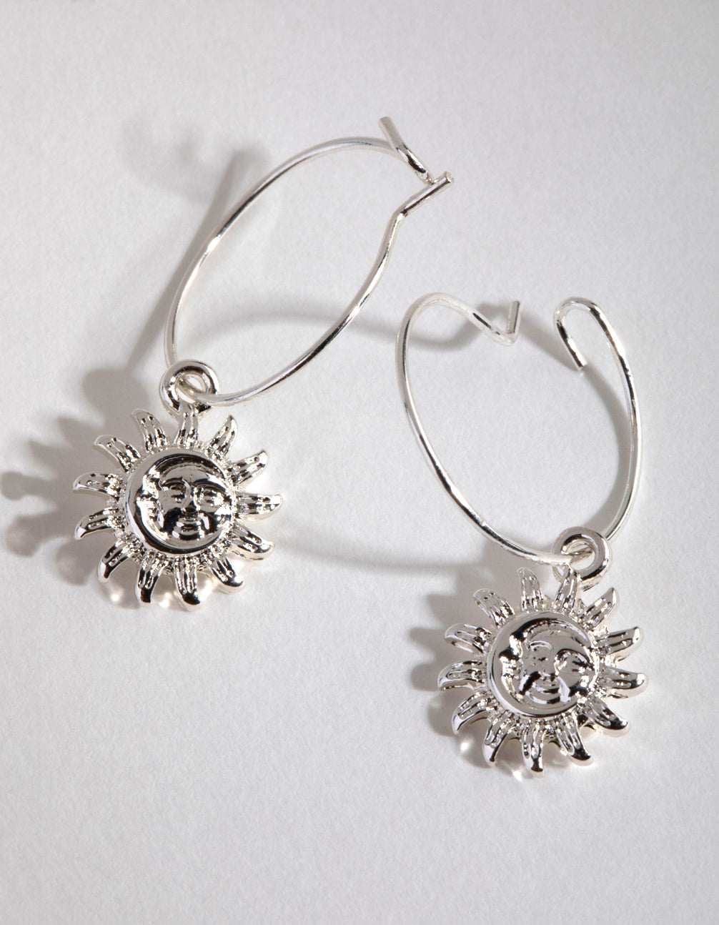 Let these cute huggie hoops bring you a little ray of sunshine! They're silver toned, and boast a cute sun design. Stack them with other earrings for maximum impact!