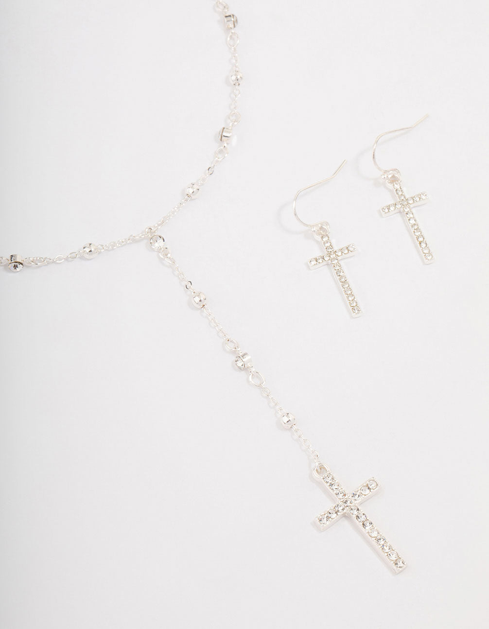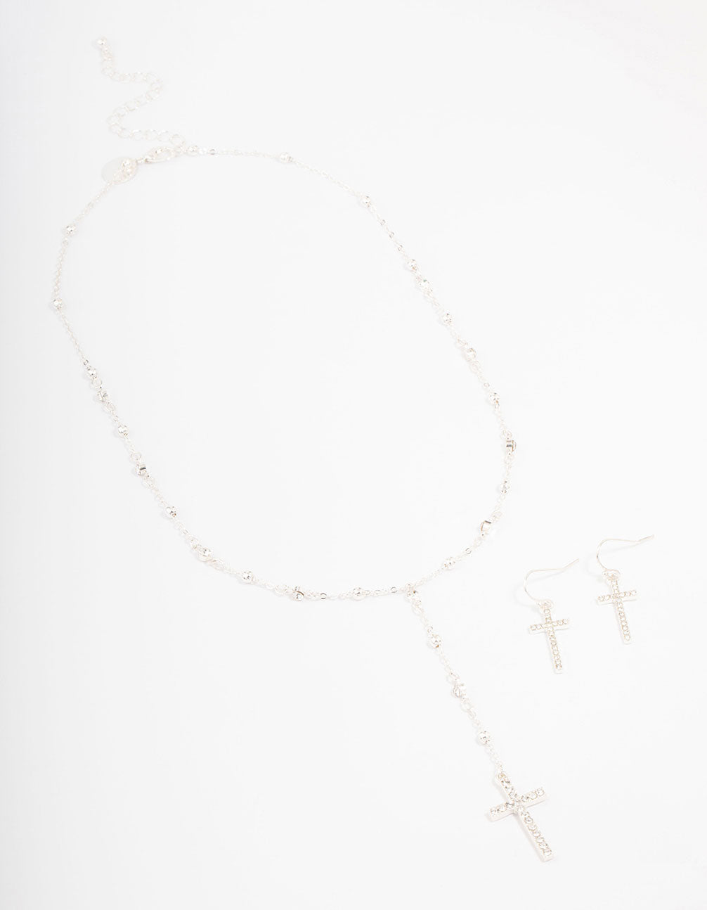 Silver Beaded Cross Jewellery Set