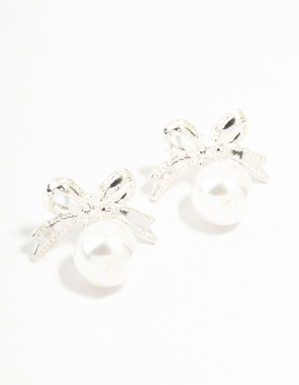 Silver Bow & Pearl Small Drop Earrings