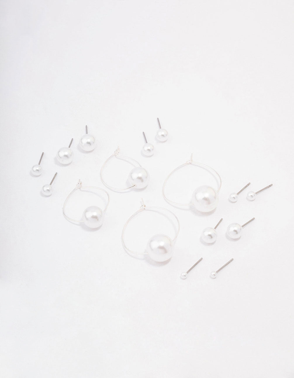 Silver Classic Pearl Hoop Earring 8-Pack