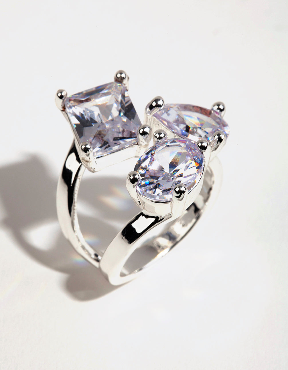 Sparkle with all the facets of a true diamond with cubic zirconia. These lab-created crystals are engineered to be indistinguishable from diamonds to the naked eye. This beautiful rhodium-toned ring features three large cubic zirconia.