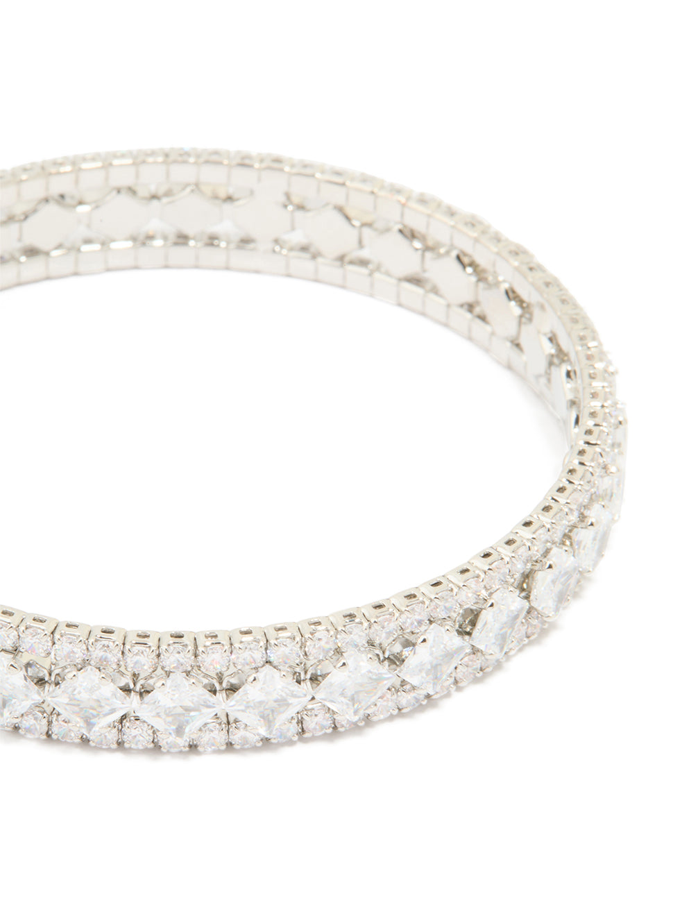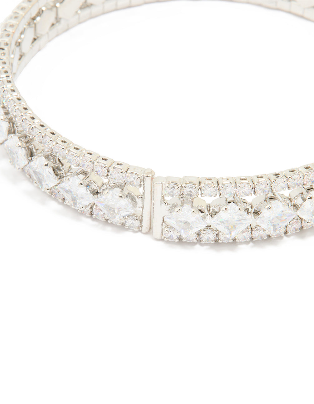 Silver Cubic Zirconia Circle Statement Wrist Cuff
