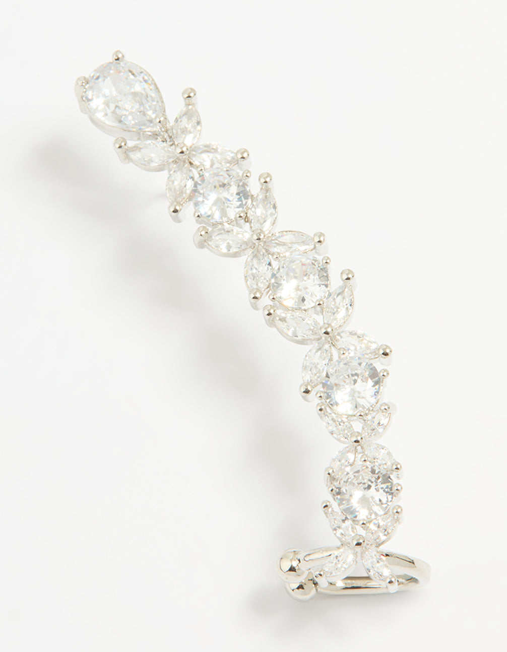 Add a touch of elegance to your look with this Silver Cubic Zirconia Floral Ear Cuff. Crafted with a sleek silver-toned finish, this ear cuff features delicate floral designs adorned with shimmering cubic zirconia crystals for a graceful yet playful vibe. Perfect for dressing up casual outfits or adding sparkle to evening wear, this ear cuff is a versatile accessory that effortlessly enhances any style. Whether paired with a flowy dress or a chic blazer, it's ideal for those moments when you want your jewellery to make a statement. No piercings? No problem! This cuff is easy to wear, making it a must-have for anyone looking to elevate their jewellery game with a fun, youthful twist.
