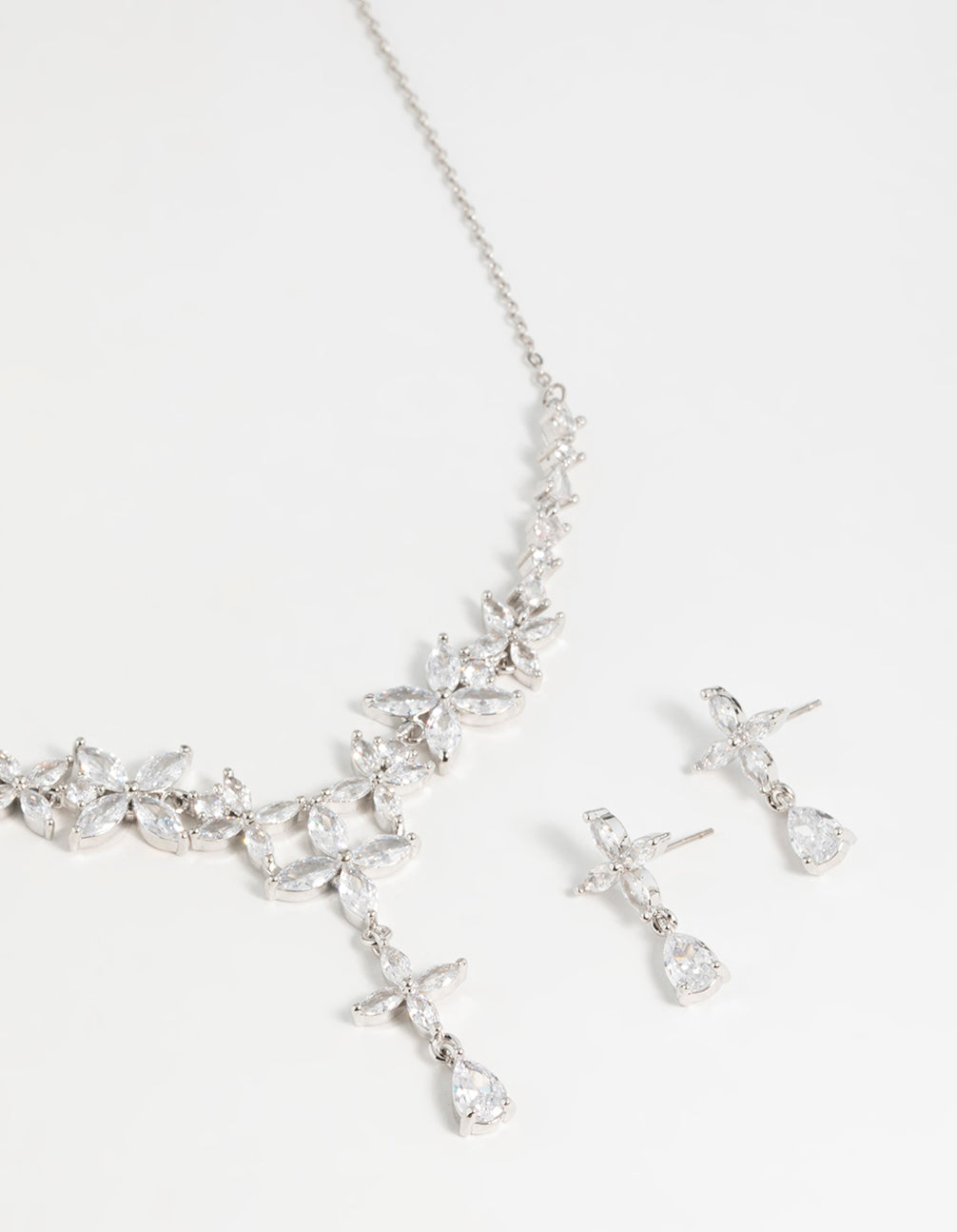 Silver Cubic Zirconia Flower Drop Earrings & Necklace Set Silver Cubic Zirconia Flower Drop Earrings & Necklace Set Silver Cubic Zirconia Flower Drop Earrings & Necklace Set