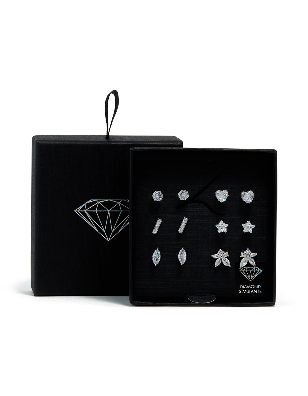 Silver Cubic Zirconia Heart & Flower Stud Earrings 6-Pack