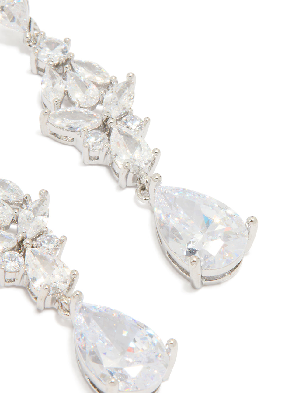 Silver Cubic Zirconia Large Butterfly Drop Earrings