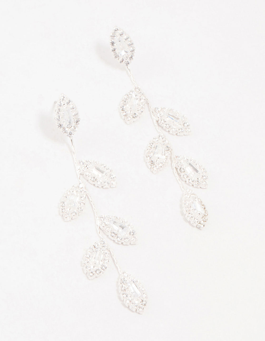 Shine bright with these Silver Cubic Zirconia Leaf Drop Earrings! Their sparkling leaf design adds nature-inspired elegance to any outfit. Perfect for turning heads and finishing your look with a touch of style.