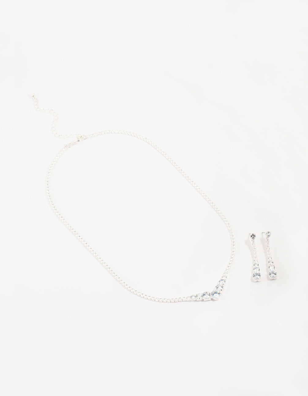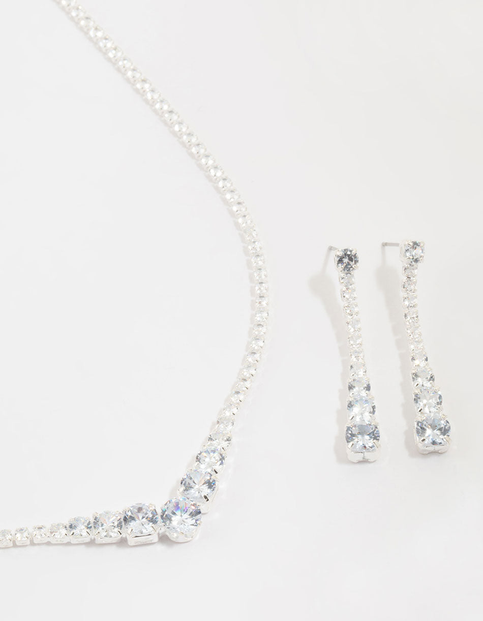 Silver Cubic Zirconia Pointed Earrings & Necklace Set