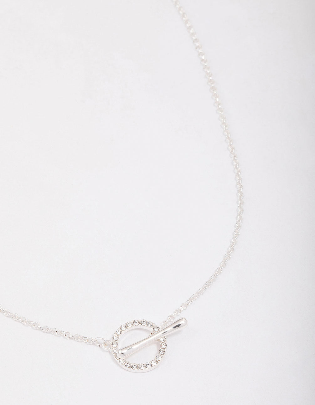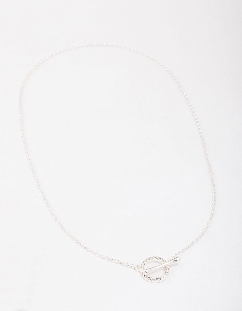Silver Diamante Circle Bar Link Necklace