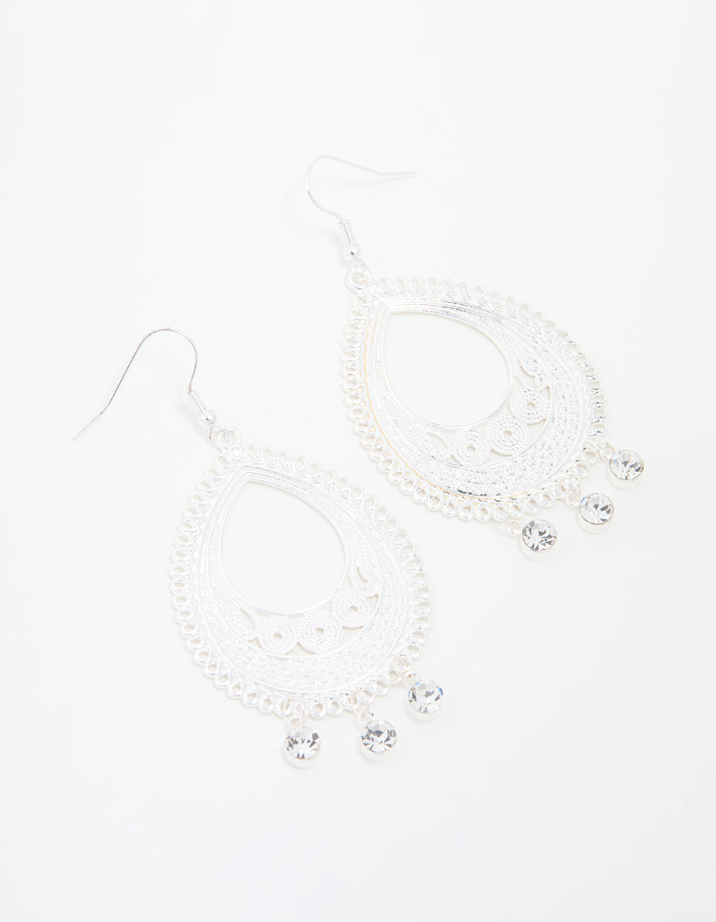 Silver Diamante Filigree Oval Drop Earrings