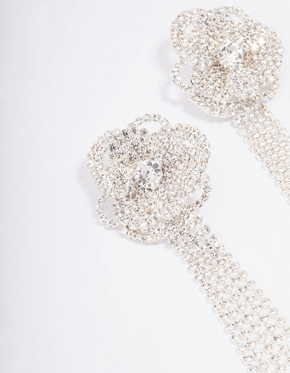 Silver Diamante Flower Cupchain Drop Earrings