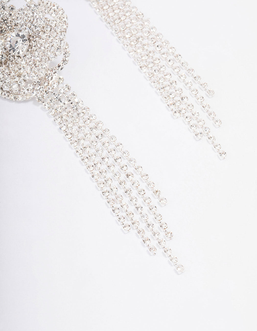 These lovely drop earrings feature a unique waterfall and floral design crafted from delicate diamantes for an eye-catching finish. Pair them with some trending rosette accessories for a modern addition to your look.