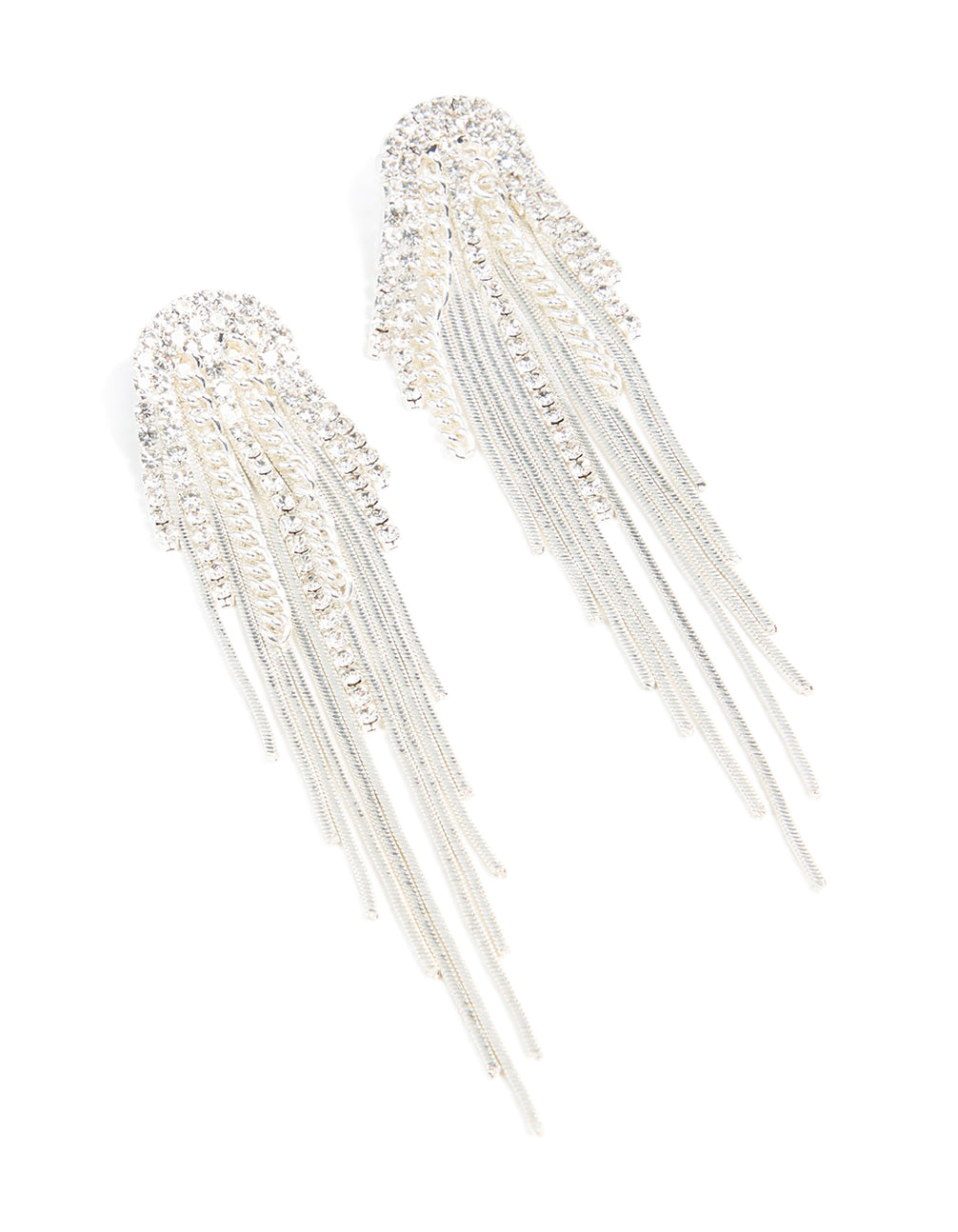 Add a touch of glam to any outfit with these Silver Diamante Multi-Chain Drop Earrings. These dazzling earrings feature delicate silver-tone chains that cascade beautifully, creating a chic and modern look. Perfect for parties, date nights, or special occasions, they pair effortlessly with a sleek dress or a stylish blazer and jeans. Their versatile design makes them an ideal choice for adding sparkle to both casual and formal outfits. Whether you're heading to a wedding or a night out, these statement earrings are a must-have for your jewellery collection. Simple yet striking, they're the ultimate finishing touch for any look!