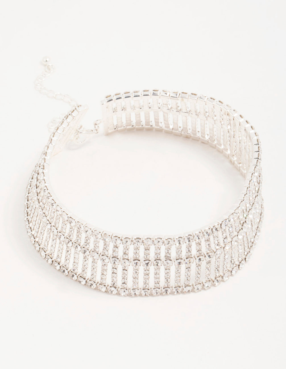 Turn heads with this Silver Diamante Stacked Cupchain Choker Necklace, the ultimate statement piece for your jewellery collection. With its sleek silver finish and sparkling diamante cupchain design, this choker is perfect for adding a touch of glamour to any outfit. Whether you're dressing up for a night out or adding some shine to your everyday look, this chain necklace is a versatile choice. Pair it with a little black dress for a chic vibe or layer it with other necklaces for a stylish stacked style. Ideal for parties, dinners, or just when you want to feel fab, this eye-catching piece is a must-have for anyone who loves bold yet elegant accessories.