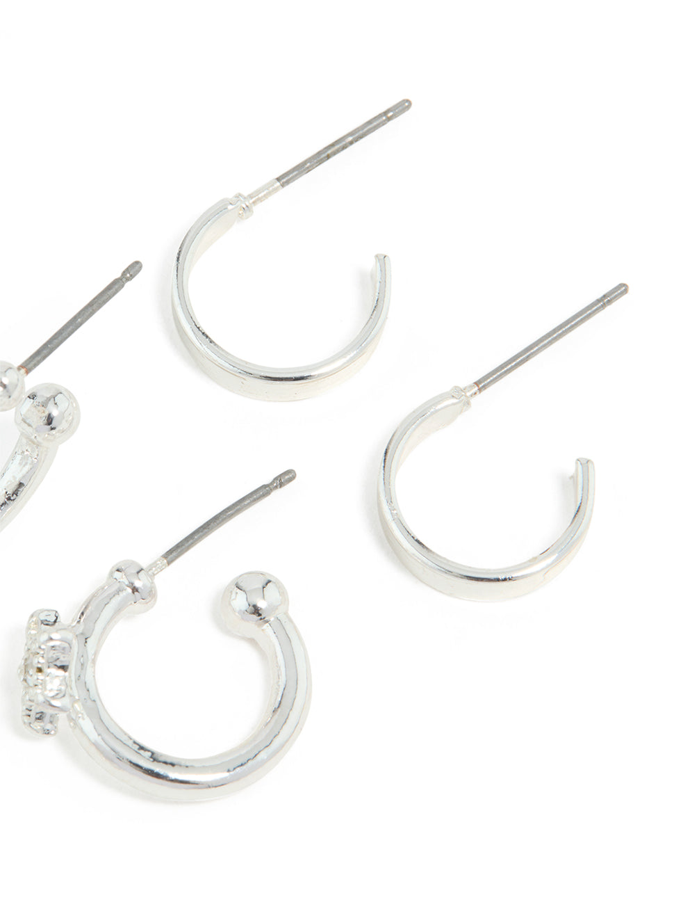 Silver Diamante Star & Smooth Hoop Earrings 3-Pack