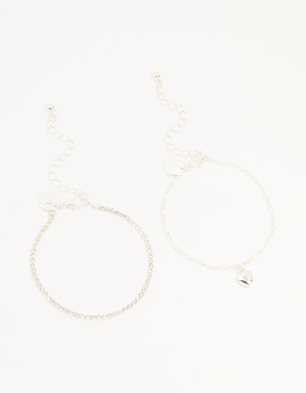 Silver Diamante Tennis Bracelet & Heart Bracelet 2-Pack