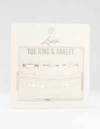 Enhance your everyday look with this silver dumbbell anklet and toe rings set! Lightweight and adjustable, they guarantee a comfy, secure fit for all-day wear. Ideal for casual or beachwear, they add subtle shine to any look.