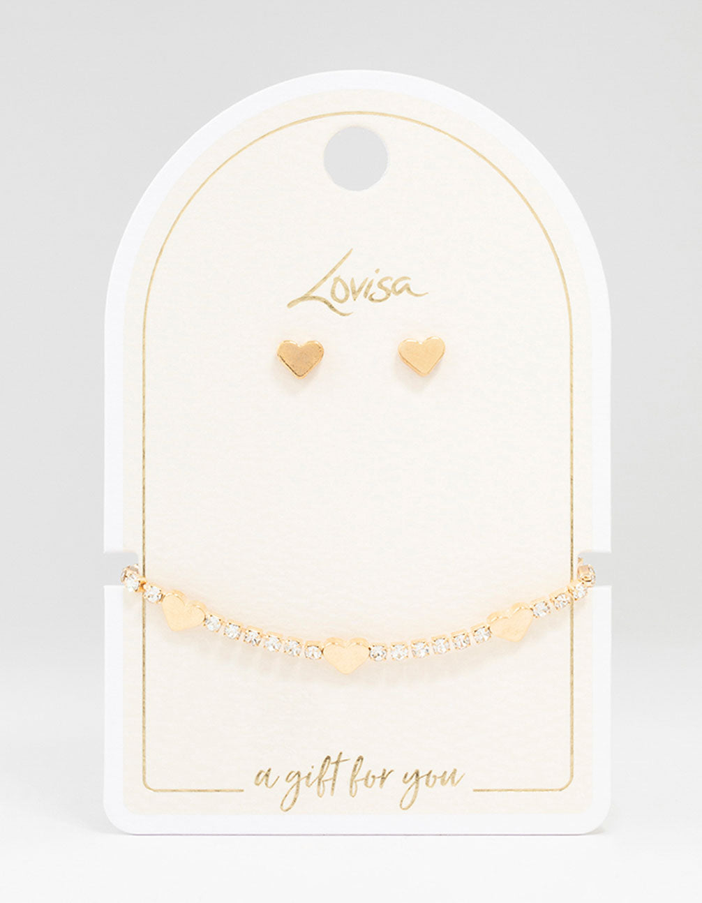 Treat yourself or loved ones to a cherished gift they'll treasure forever. Gift your favourite people with a glamourous, always on-trend gift with this pretty set of silver heart stud earrings and matching tennis bracelet. The sleek tennis design creates a polished, elegant vibe.