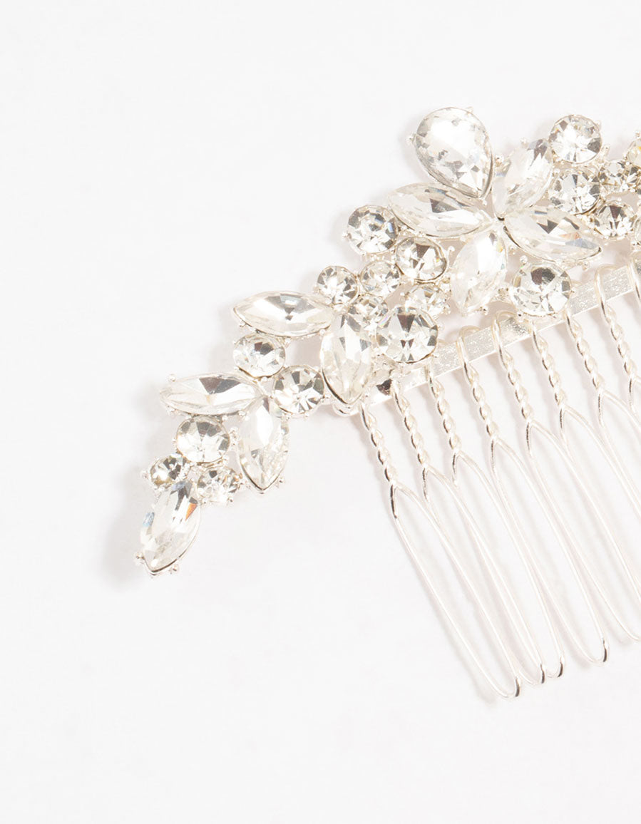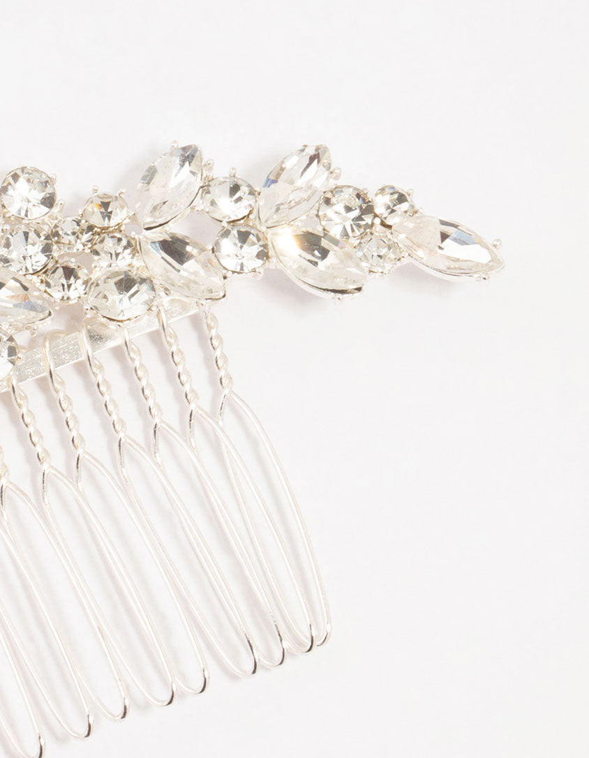 Silver Mixed Cut Cubic Zirconia Hair Comb