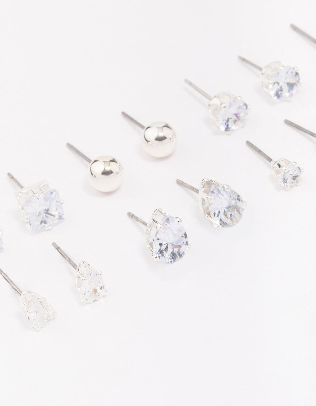 Create the ear stack of your dreams with this pack of silver-toned earrings. This earring pack includes eight sets of earrings, each adorned with varying diamantes for a touch of glamour. Perfect for styling together, or solo!