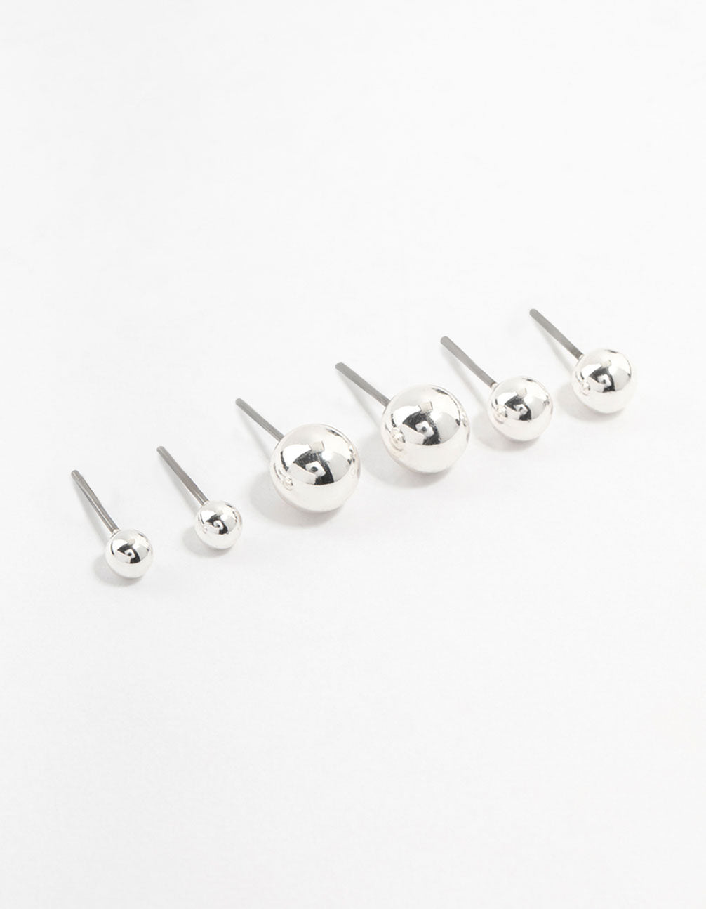 Silver Multiple Sphere Stud Earrings 3-Pack