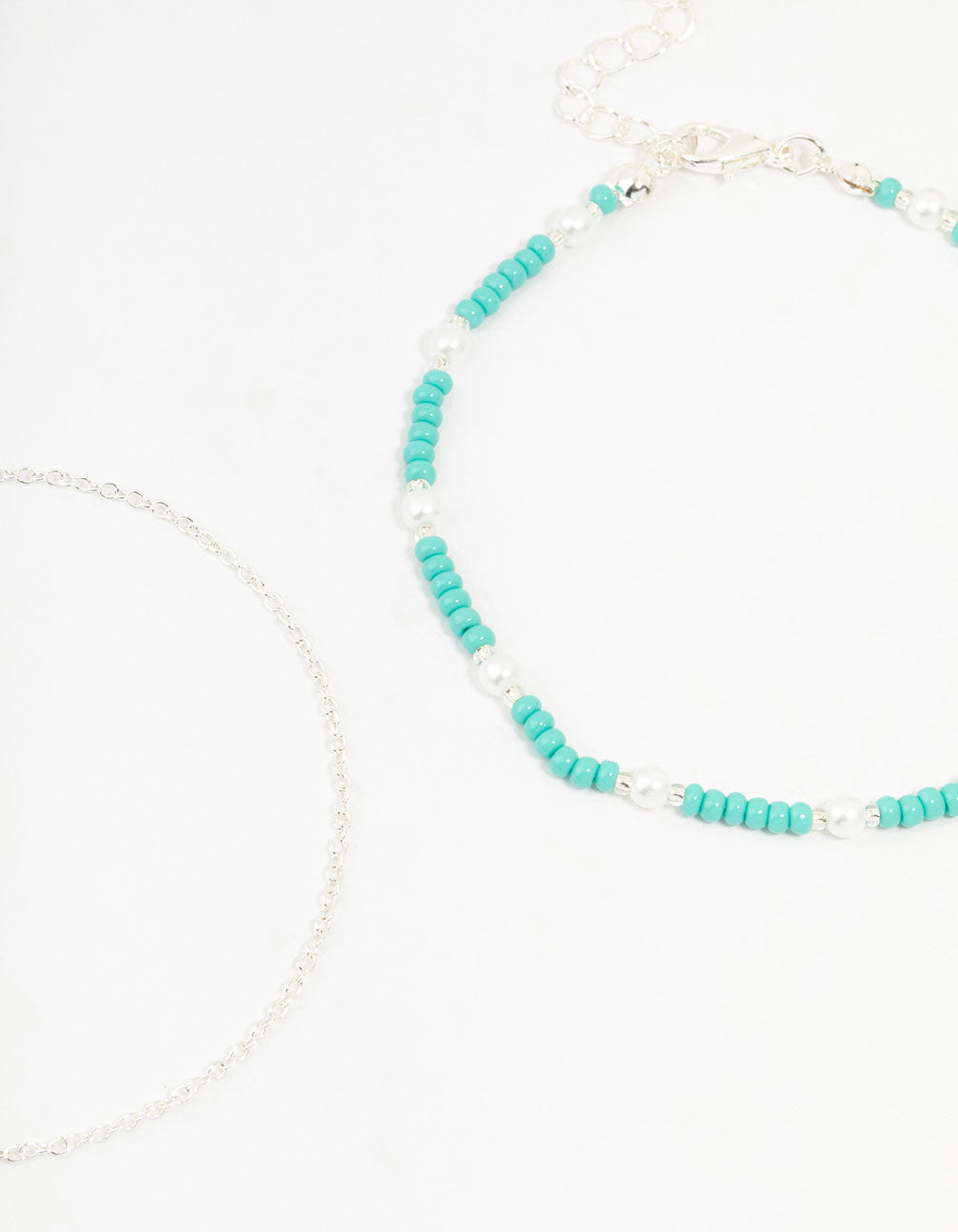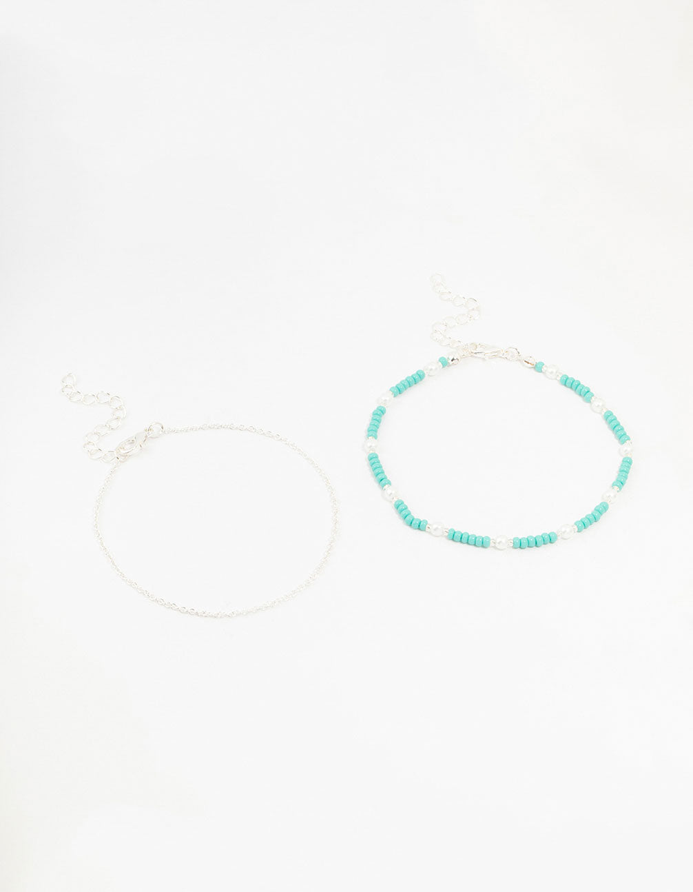 Silver Pearl Beaded Anklets 2-Pack